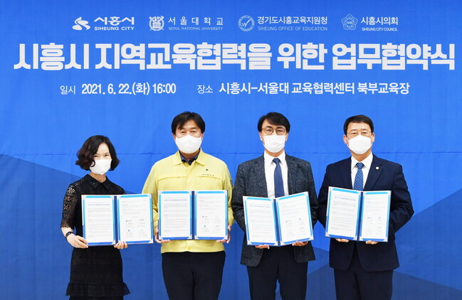 시흥시(시장 임병택)는 22일 서울대 교육협력센터 북부교육장(은계지구)에서 서울대학교, 경기도시흥교육지원청, 시흥시의회와 ‘시흥시 지역교육협력을 위한 업무협약’을 체결했다.