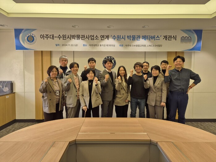 수원시박물관사업소는 아주대학교와 22일 아주대 율곡관 제1회의실에서 ‘수원시 박물관 메타버스’ 개관식을 열었다.