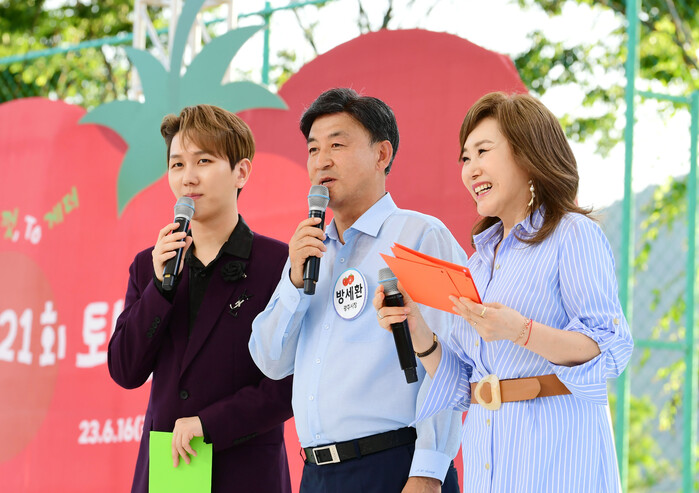 축제 둘째 날인 15일에는 태권도 공연과 판굿 공연을 비롯해 저녁에는 ‘토마토 열린 콘서트’가 진행된다. 김혜연, 요요미, 우연이, 동후, 박진 등의 가수들이 나와 신명 나는 축제를 만든다.
