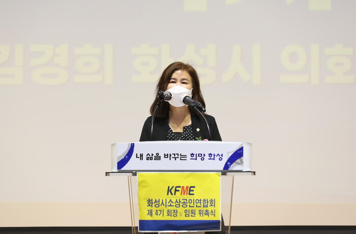 화성시의회 김경희 의장은 16일 화성시청 대강당에서 개최된 제4기 화성시 소상공인연합회 회장 취임식에 참석하여, 신임 김창석 회장 취임 및 임원진의 위촉을 축하하였다.