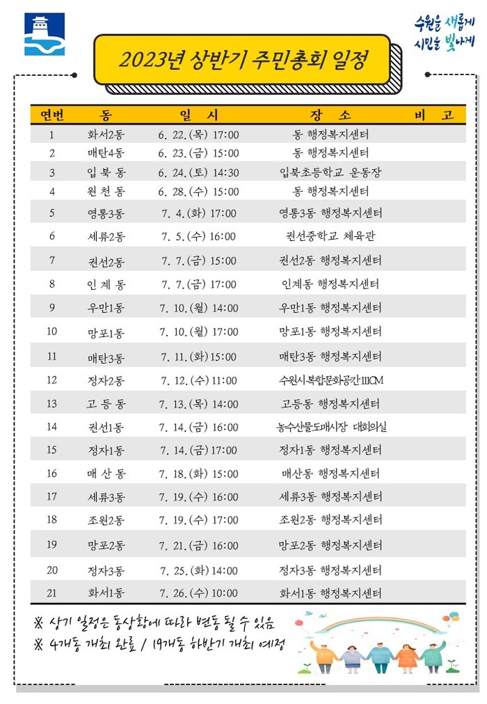 수원시 44개 전체 동이 6월부터 하반기까지 주민총회를 개최한다.