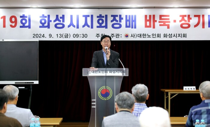 화성시(시장 정명근)가 13일 대한노인회 화성시지회에서 개최한 ‘제19회 대한노인회 화성시지회장배 바둑·장기 대회’에 참석해 대회에 참가한 어르신들을 격려했다.