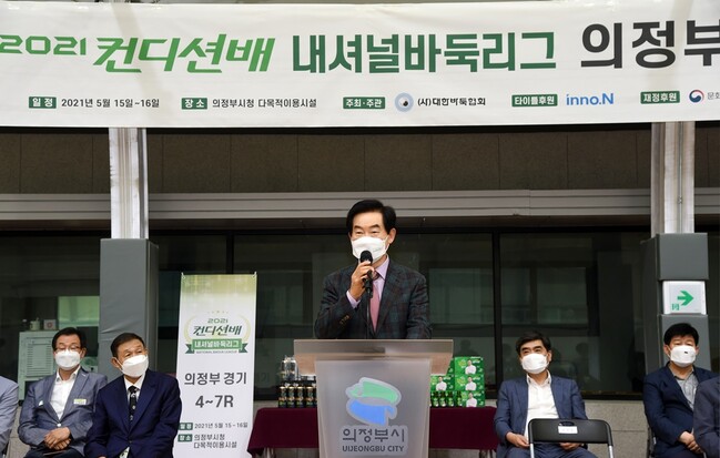 안병용 의정부시장은 15일 의정부시청 다목적이용시설에서 개최된 2021 컨디션배 내셔널 바둑리그 개회식에 참석해 선수단을 격려했다.