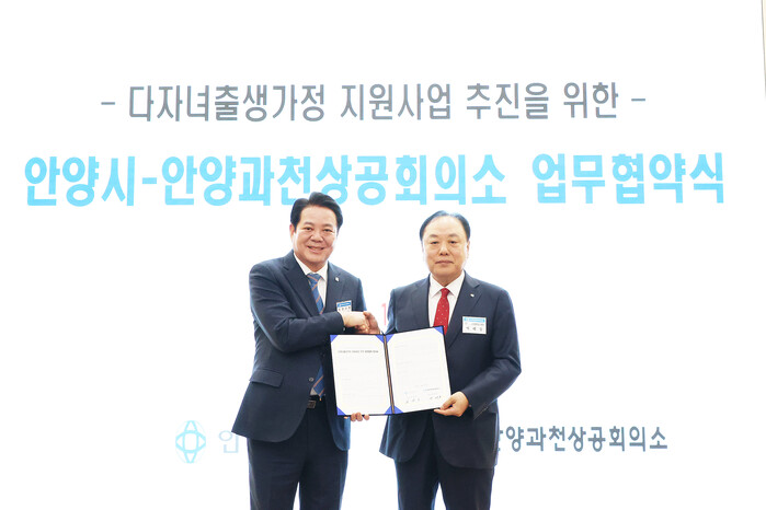 안양시는 15일 안양과천상공회의소와 ‘다자녀 출생가정 지원사업 추진 상호협력 업무협약’을 체결했다.