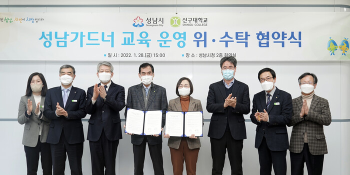 성남시는1월28일 오후3시 시청2층 회의실에서 신구대학교 산학협력단(이하 신구대)과‘성남시민 가드너(정원사)교육 운영에 관한 위·수탁 협약식’을 했다.