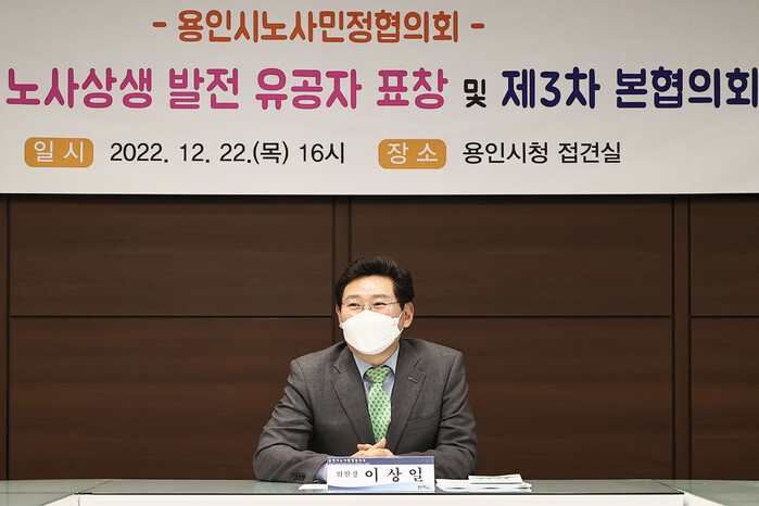 용인특례시(시장 이상일)는 22일 시청 4층 접견실에서 용인시노사민정협의회 제3차 본협의회를 열고, 노사상생 발전 유공자 10명에 표창을 전달했다.