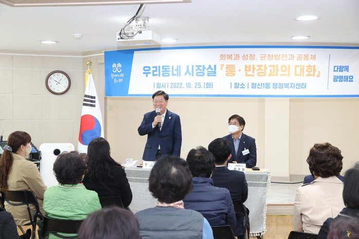 박승원 광명시장은 “철산1동 우리동네 시장실을 통해 시민에게 한 걸음 더 다가가 소통하며 교류할 수 있는 소중한 시간을 가지게 되었다”며, “지역 주민 한분 한분이 전달해 주신 소중한 의견에 귀 기울여 시정에 적극 반영할 수 있도록 노력하겠다”고 전했다.
