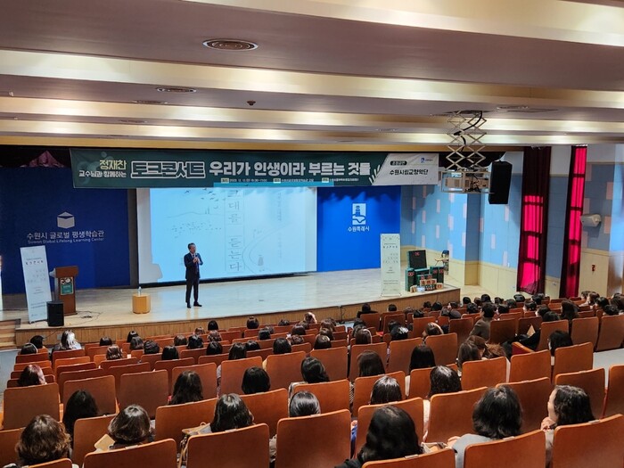 수원시동부육아종합지원센터는 12일 수원시글로벌평생학습관 강당에서 관내 어린이집 원장 250여 명을 대상으로 보육교직원 힐링 문화체험 ‘정재찬 교수님과 함께하는 토크콘서트’를 열었다.