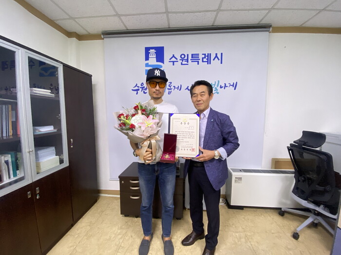 수원시가 6·25전쟁 참전해 공을 세운 故 황복동 병장, 故 윤영철 상병의 유족에게 화랑무공훈장을 전수했다. 전수식은 21일 수원시 복지여성국장 집무실에서 열렸다.