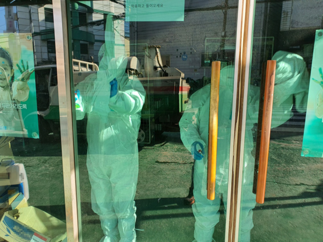 <사진/ 코로나19 확진자가 발생한 당정동 소재 업체 방역 활동>