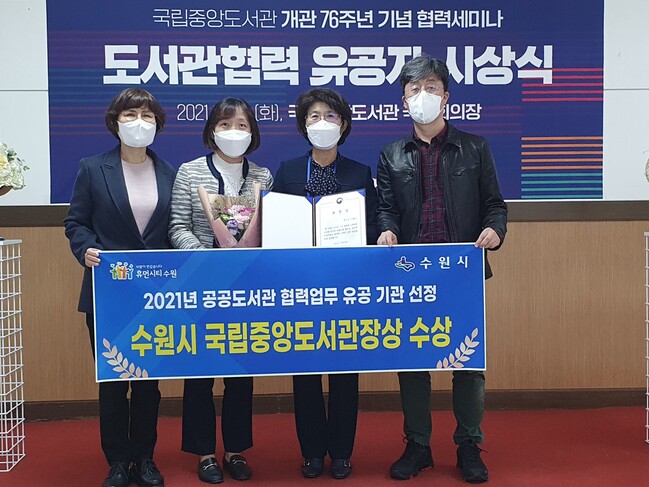 수원시는 26일 오후 2시 개최된 국립중앙도서관 개관 76주년 기념 협력세미나에서 ‘공공도서관 협력업무 유공’ 단체로 선정돼 국립중앙도서관장 표창과 함께 포상금 100만원을 받았다.