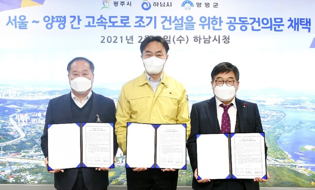 [로컬라이프] 하남시(시장 김상호)는 광주시, 양평군과 ‘서울~양평 간 고속도로 건설’ 조기 착수를 촉구하는 공동건의문을 채택했다.