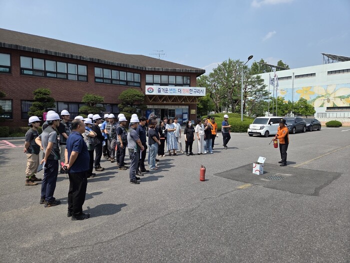 구리시(시장 백경현) 하수도 공기업은 지난 18일 구리하수처리장 사무동 앞에서 구리소방서 교문119안전센터와 함께 지진 및 화재 발생에 대비한 합동 소방훈련을 실시했다고 밝혔다.