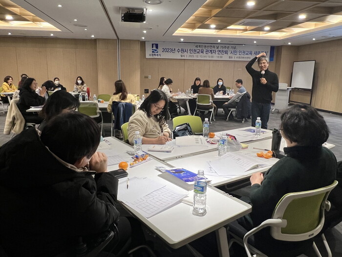 수원시가 UN 세계인권선언의 날(12월 10일) 75주년을 기념해 13일 수원컨벤션센터에서 ‘수원시 인권교육단체 관계자 역량강화 연찬회’를 열었다.