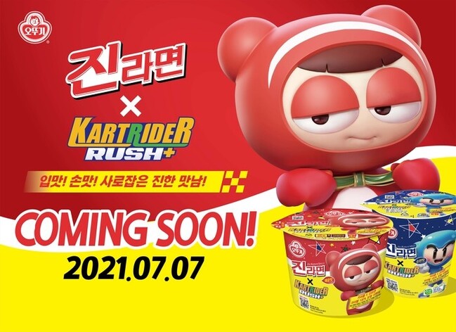 컬래버레이션은 오뚜기 대표 제품인 '진라면'과 넥슨의 모바일 레이싱 게임인 '카트라이더 러쉬플러스(이하 카러플)'와의 만남이다.