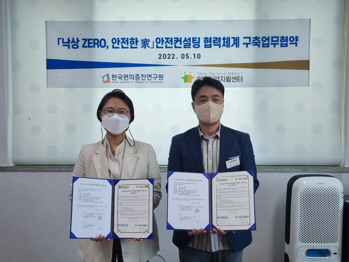 양평군 지역자활센터(센터장 최유진)에서는 지난 10일 고령자 맞춤형 주거환경개선사업인 ‘낙상 ZERO, 안전한 家’사업의 성공적 수행을 위해 한국편의증진연구원(대표 조현주)와 업무협약식을 체결했다.