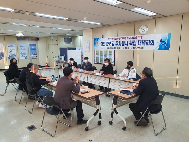 수원시는 최근 수원남부경찰서, 5개 공유 전동킥보드 운영업체와 ‘개인형 이동 수단(PM, Personal Mobility) 사고 예방을 위한 대책회의’를 열고, 안전관리 조치를 논의했다.