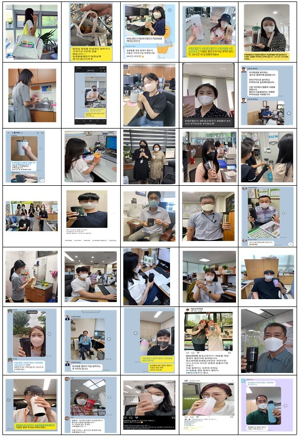 수원시와 수원교육지원청이 협력하여 진행한 ‘일회용품 제로 릴레이 챌린지’는 텀블러, 손수건 등을 사용하는 모습을 촬영해 24시간 안에 본인 SNS에 게시하고 다음 챌린지 대상을 지정하는 캠페인으로 일주일 동안 공무원·환경교육 관계자 1089명, 학생 1942명 등 3031명이 참여했다. 수원시는 공무원을 대상으로 한 ‘나만의 애착 텀블러 콘테스트’를 열어 최우수 1명, 우수 2명, 장려 3명을 선정했다.