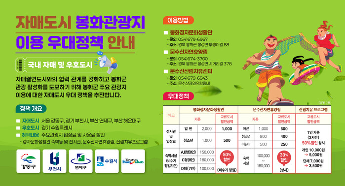 할인 혜택은 자매결연 도시인 봉화군이 자매도시 시민을 대상으로 시행하는 관광 우대정책이다.