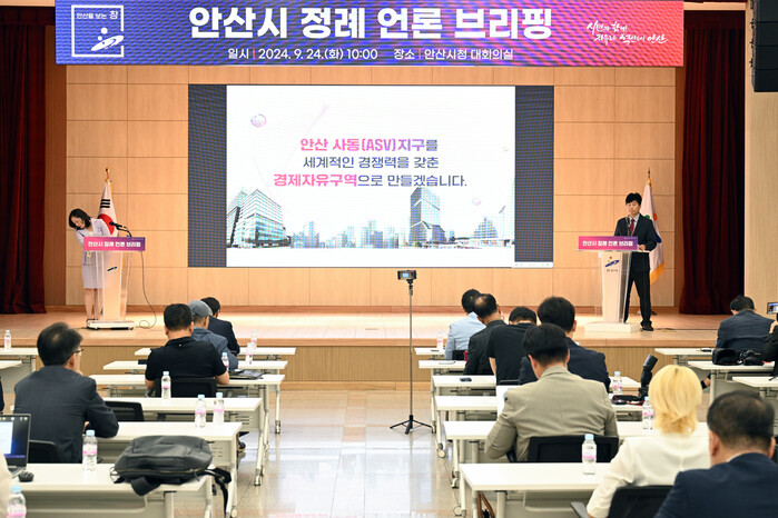 안산시(시장 이민근)는 24일 오전 시청 대회의실에서 개최한 9월 언론브리핑에서 민선8기 역점사업 가운데 하나인 경기 경제자유구역 안산 사동(ASV*) 지구의 추가지정을 위한 준비가 순조롭게 진행되고 있다고 밝혔다.