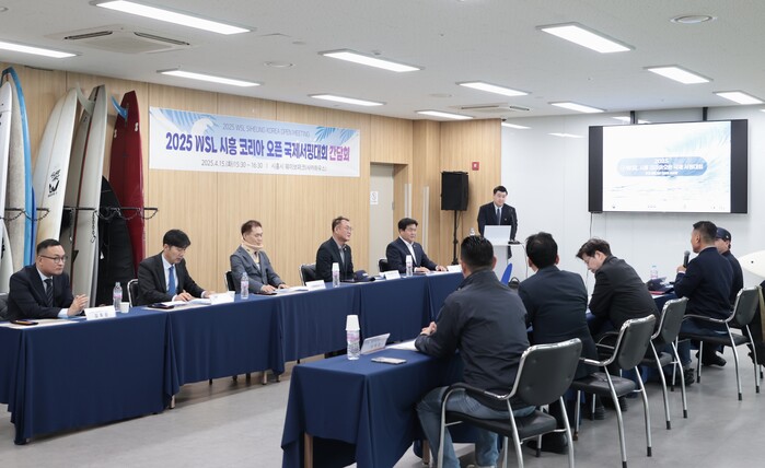 시흥시(시장 임병택)는 오는 7월 개최 예정인 ‘2025 WSL(월드서프리그ㆍWorld Surf League) 시흥코리아오픈 국제서핑대회’의 성공적인 추진을 위해 4월 15일 거북섬 웨이브파크 내 샤카하우스에서 관계기관 간담회를 열었다.