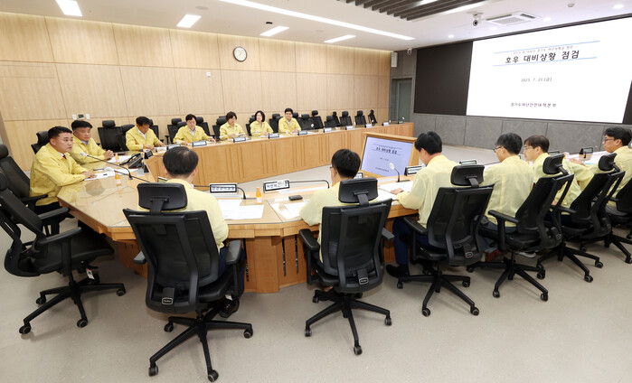 주말을 기점으로 다시 장맛비가 예고된 가운데 경기도의회 국민의힘 김정호(광명1) 대표의원을 비롯한 대표단이 21일 경기도 재난안전상황실을 찾아 호우 대비 태세를 점검했다.