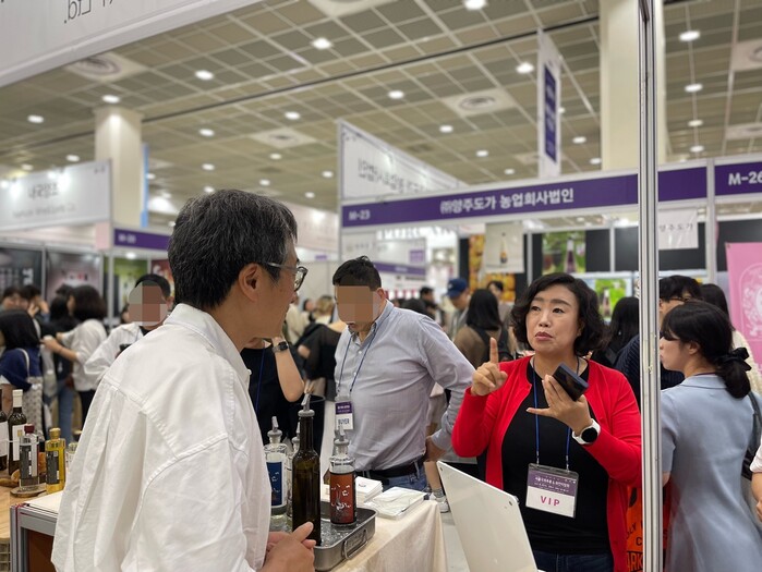 전통주 산업 활성화 정책 마련에 주력 중인 경기도의회 국민의힘 곽미숙(고양6) 대표의원이 22일 서울 코엑스에서 열린 ‘서울국제주류&와인 박람회’를 찾아 경기도 내 전통주 참가업체들을 응원했다.