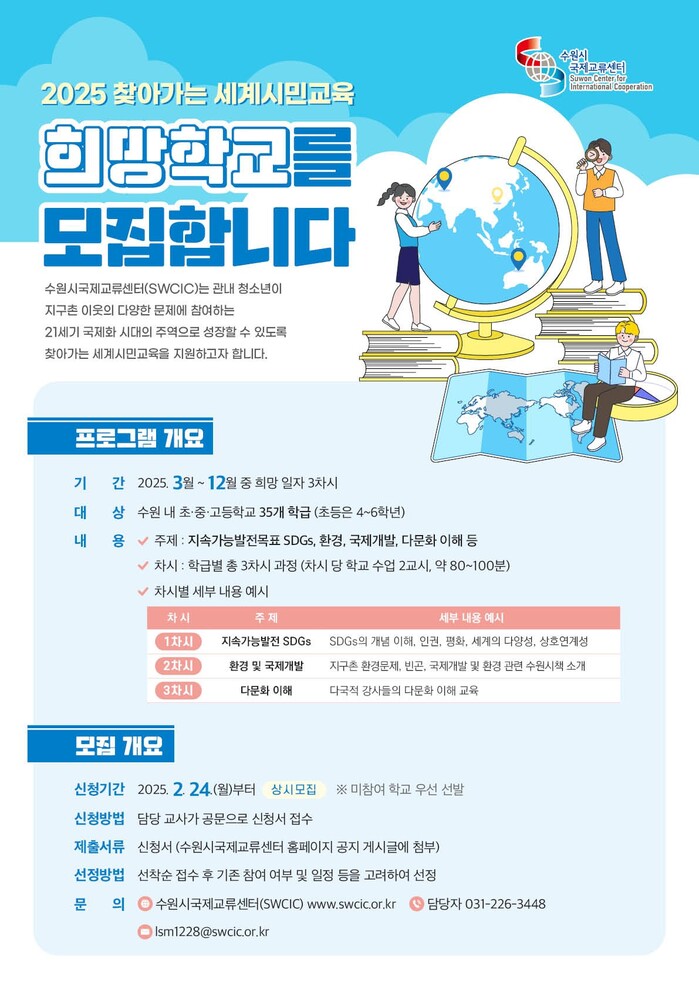 수원시국제교류센터가 ‘2025 찾아가는 세계시민교육’에 참가할 학교를 모집한다.