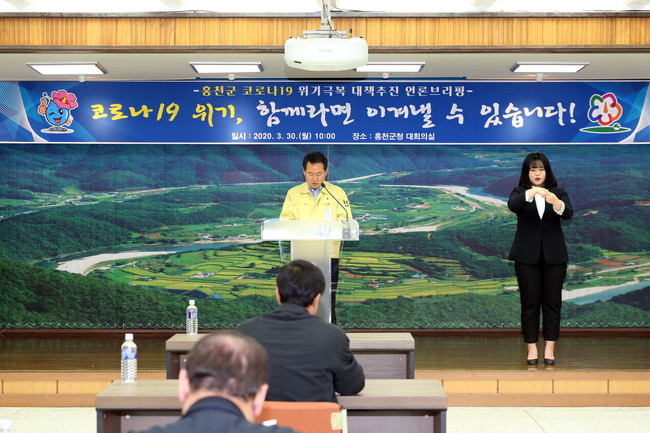 홍천군은 3월 30일 오전 10시 군청 대회의실에서 브리핑을 통해 모든 군민 재난기본소득 지원과 소상공인에 대한 임대료 지원, 상하수도요금 감면지원 등을 발표했다. 필요한 재원 250억 원은 코로나-19로 인해 집행되지 못한 예산, 기편성 세출예산 구조조정을 통한 재원, 순세계잉여금, 재난관련 예비비 등을 통해 마련할 계획이다.