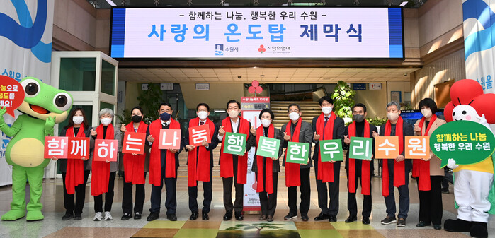 수원시는 5일 시청 본관 로비에서 ‘사랑의 온도탑’ 제막식을 열고, ‘희망 2023 나눔캠페인’을 시작했다.