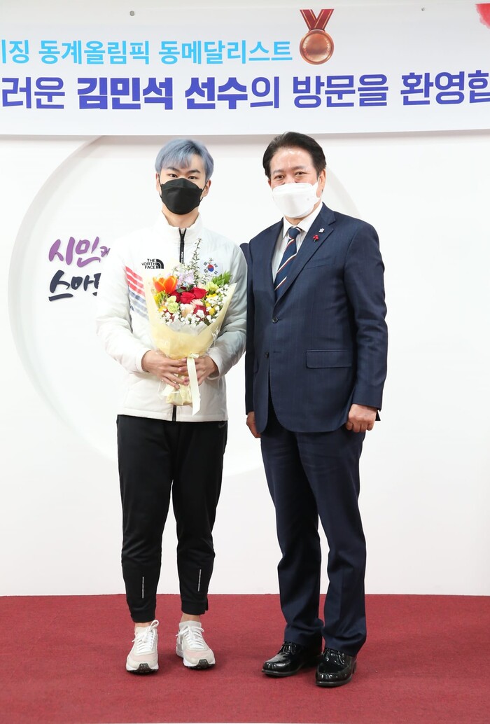 [로컬라이프] 송준형 기자 = 안양시는 베이징올림픽 첫 메달로 감동을 준 김민석 선수가 안양 시청을 방문했다고 밝혔다.