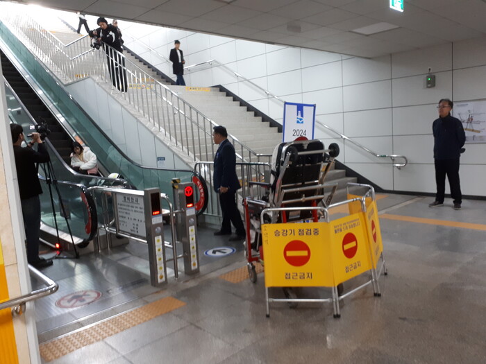 수원시(시장 이재준)가 8일 고색역에서 승강기 사고대응 실전 모의훈련을 했다.