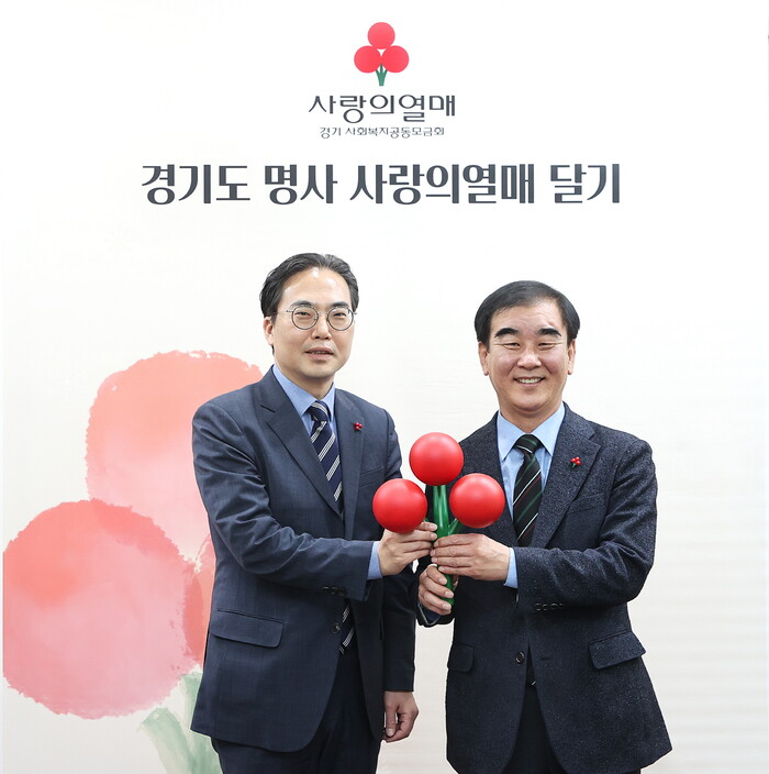 염종현 경기도의회 의장이 14일 경기도사회복지공동모금회(경기 사랑의열매)에서 주관하는 ‘경기도 명사 사랑의열매 달기 릴레이’에 참여하며 나눔문화 확산에 동참했다.