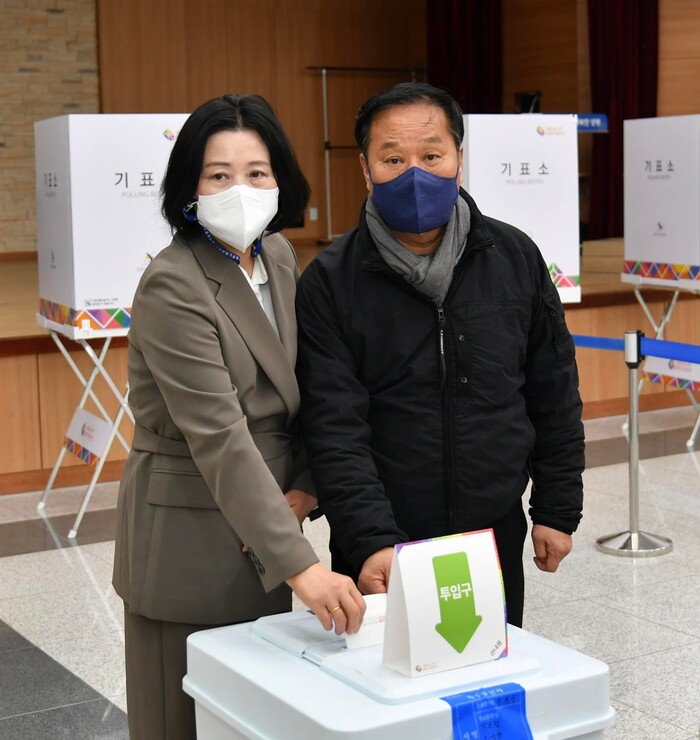 그러면서 뜨거운 사전투표 열기에 동참하기 위해 저도 방금 아내와 함께 옥천면 사전투표소를 찾아 투표를 마쳤다. 다소 쌀쌀한 날씨에도 많은 분들이 사전투표 현장을 찾아 소중한 한표를 행사해 주시고 계신다고 전했다.
