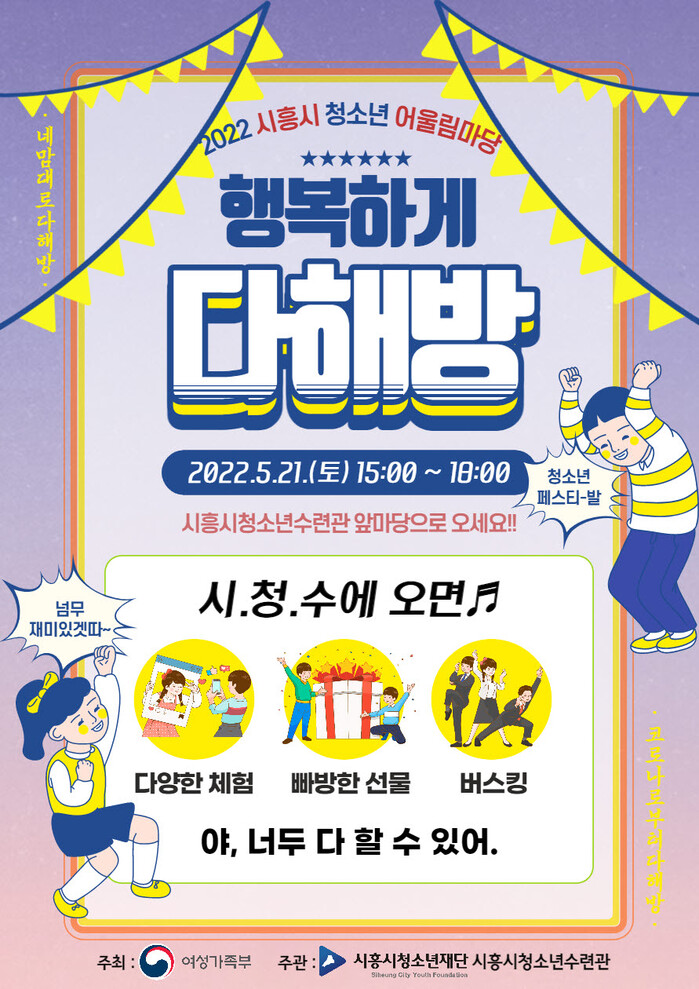 여성가족부가 주최하고 시흥시청소년재단(대표이사 이덕희)이 주관하는 시흥시 청소년어울림마당이 오는 5월 21일 15시부터 18시까지 시흥시청소년수련관 앞마당에서 열린다.