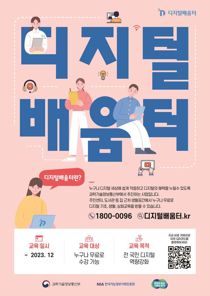 신청을 원하는 시민은 디지털배움터 홈페이지>배움터교육>교육과정>교육신청하기에서 신청하거나 전담 콜센터(1800-0096)에 전화하면 된다.
