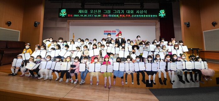 대회 대상인 오산시장상은 전하준(4세), 이지안(5세), 유열매(6세), 이하라(7세), 민지온(8세), 최지유(9세), 강민채(10세) 어린이 7명이 수상의 영예를 차지했다.