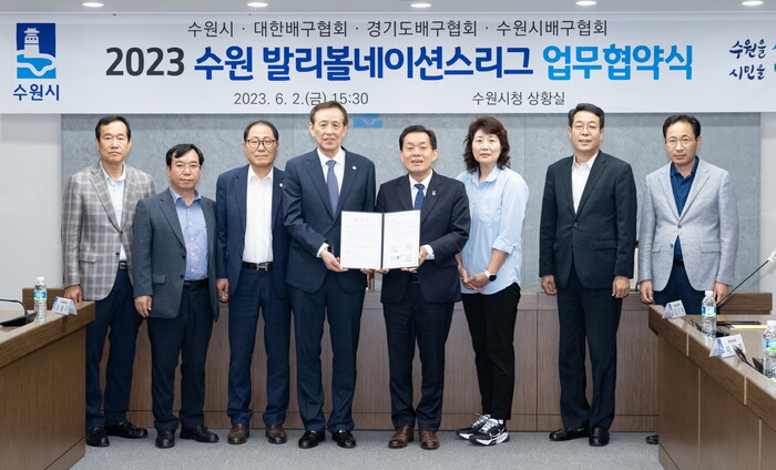 수원시와 대한배구협회, 경기도배구협회, 수원시배구협회가 6월 27일부터 7월 2일까지 서수원칠보체육관에서 열리는‘2023 수원 발리볼네이션스리그’를 성공적으로 개최하기 위해 협력하기로 했다.