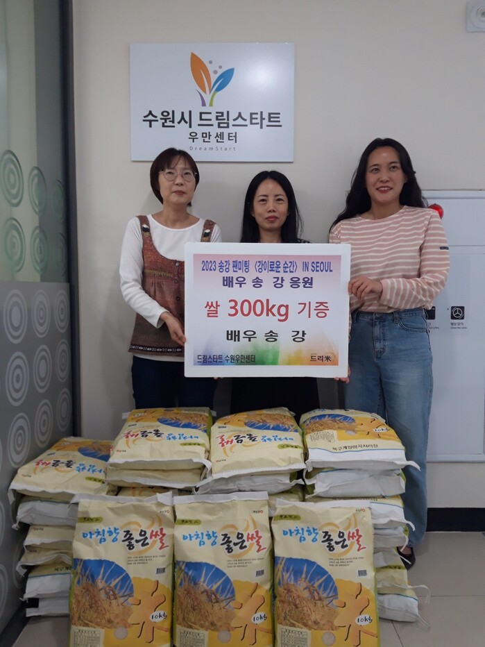 수원 출신 배우 송강(28)의 서포터즈가 수원시 드림스타트에 쌀 300㎏를 기부했다.