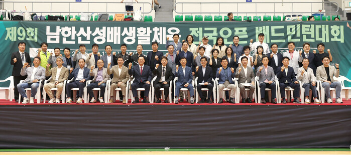 성남시의회(의장직무대리 부의장 안광림을 비롯한 의원들)는 12일 성남실내체육관에서 열린 ‘제9회 남한산성배 생활체육 전국 배드민턴대회’에 참석해 개회식을 축하하고 참가 선수들을 격려했다. 이번 대회는 생활체육 활성화와 전국 동호인 간의 교류 확대를 위해 마련된 행사로, 전국에서 모인 배드민턴 동호인 1,000여 명이 참여해 열띤 경합을 펼쳤다.