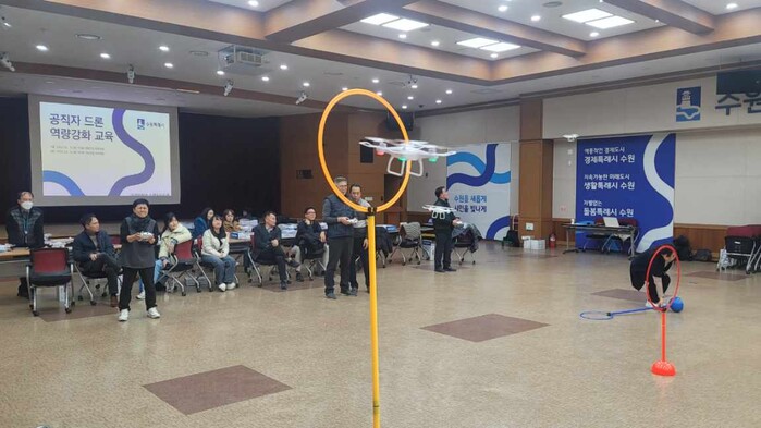 수원시는 지난 5일, 12일 영통구청·권선구청 대회의실에서 공직자를 대상으로 드론 역량강화 교육을 했다.