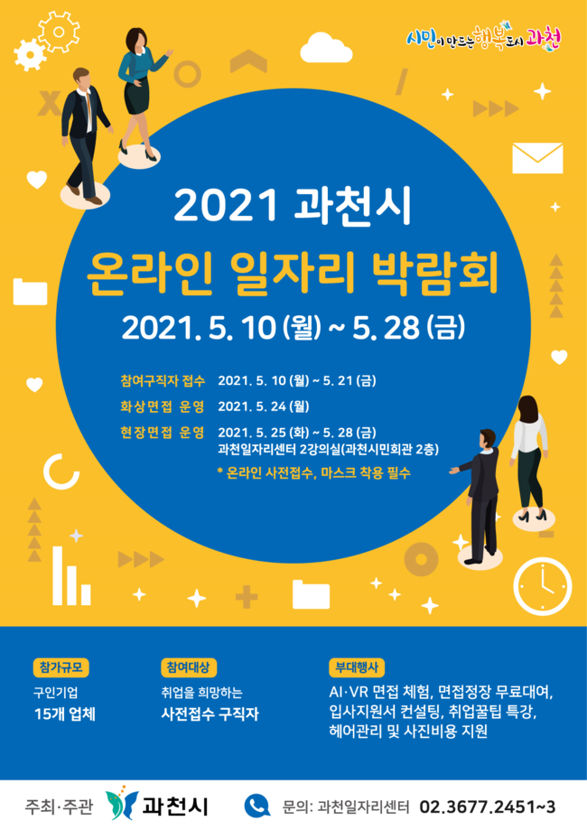 기타 취업박람회 문의사항 및 취업에 대한 도움을 받고 싶은 경우 과천일자리센터 (02-3677-2451, 2452)로 연락하면 된다.