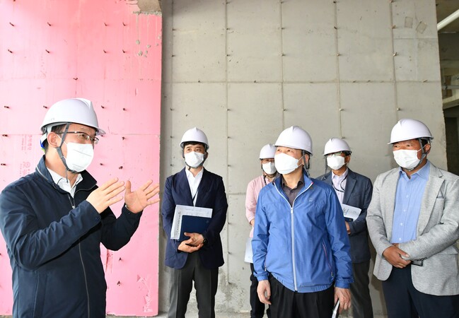 사진/조청식 수원시 제1부시장이 인권청사로 건립 중인 지동 행정복지센터 신축 현장을 점검하고 있다.