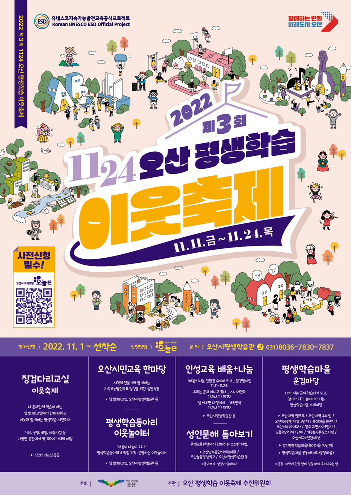 오산시가 다음 달 11일부터 24일까지 2주간 “제3회 1124 오산 평생학습 이웃축제”를 개최한다.