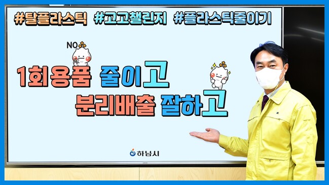 광주하남교육지원청 한정숙 교육장의 지명을 받은 김상호 시장은 ‘1회용품 줄이고! 분리배출 잘하고!’라는 구호를 공유하고, 앞으로 전 직원과 함께 생활 속 플라스틱 줄이기를 실천하기로 약속했다.