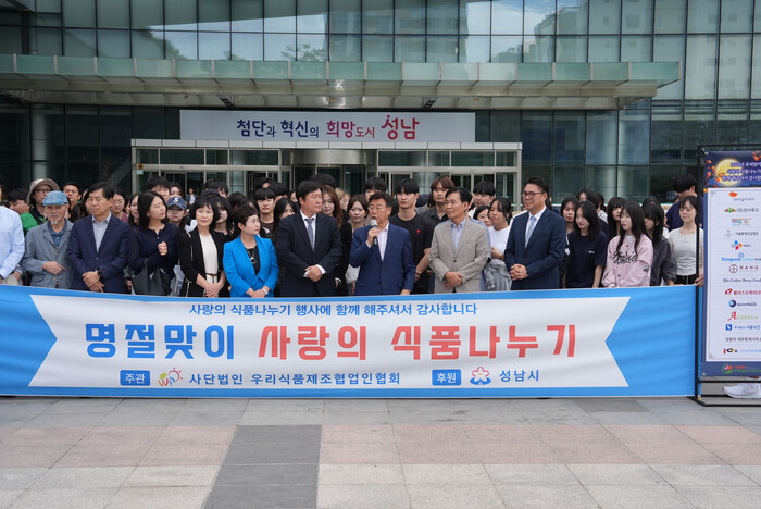 ㈔우리식품제조협업인협회는9월23일 오전11시 성남시청 광장에서‘추석 명절맞이 사랑의 식품 나누기 행사’를 열었다.