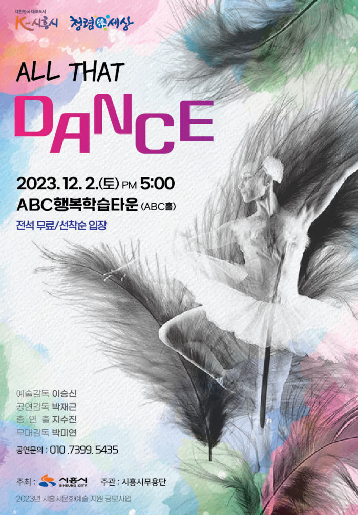 시흥시(시장 임병택)가 주최하고, 시흥시무용단이 주관하는 현대무용 공연 ‘All that dance’가 12월 2일 오후 5시에 시흥ABC행복학습타운 ABC홀에서 개최된다.
