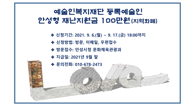 [로컬라이프] 안성시, 제2차 문화예술인 재난지원금 100만원 지원