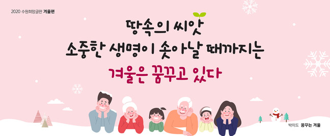 현재 수원희망글판에는 겨울편 문안 ‘땅속의 씨앗 소중한 생명이 솟아날 때까지는 겨울은 꿈꾸고 있다’가 게시돼 있다. 박이도 시인의 시 ‘꿈꾸는 겨울’에서 발췌한 문안이다.