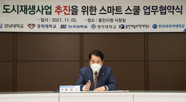 이날 협약에는 백군기 용인시장, 윤신일 강남대 총장, 김우식 경희대 학무부총장, 김수복 단국대 총장, 임연수 명지대 부총장, 최성식 용인예술과학대 총장, 김상헌 한국외대 행정지원처장이 참석했다.